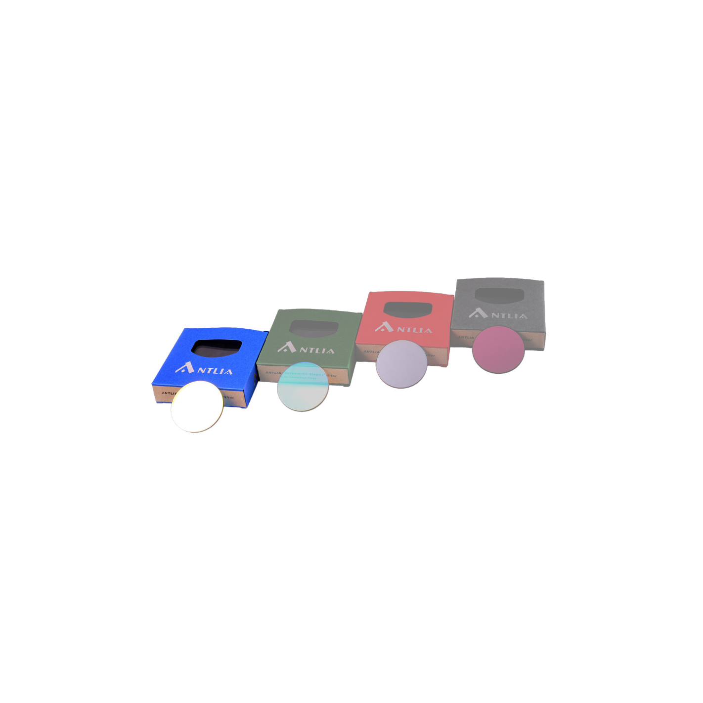 Os filtros SLOAN Antlia são constituídos por 4 filtros (g'/r'/i'/z') que cobrem o espetro visível e mais além: de 400nm até ao limite de sensibilidade das câmaras CCD de silício (cerca de 1100nm). A tecnologia utilizada (deposição assistida por pistola de iões no substrato polido de dupla face) torna os filtros Antlia uma referência em termos de durabilidade e desempenho.