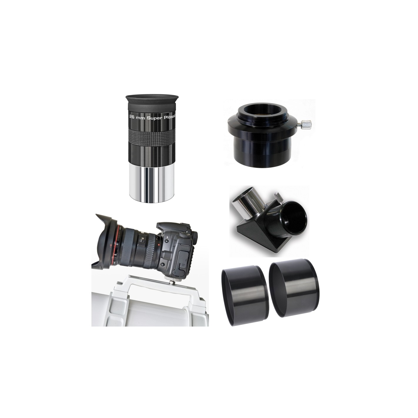 - Adaptador de 50,8 a 31,7 mm com adaptador T2 integrado (é necessário um anel T2 opcional)
