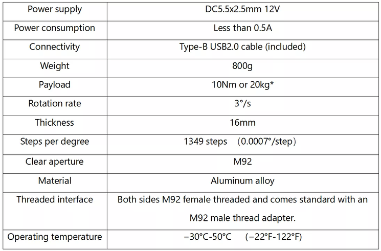 Graças a um mecanismo de rotação patenteado, o WandererRotator v2 garante a estabilidade do plano focal durante o movimento. Este sistema, que combina fricção e magnetismo, elimina as folgas e as folgas do mecanismo, assegurando uma colimação uniforme, uma elevada rigidez e uma estabilidade sem inclinação. O binário atinge 10 Nm (20 kg).