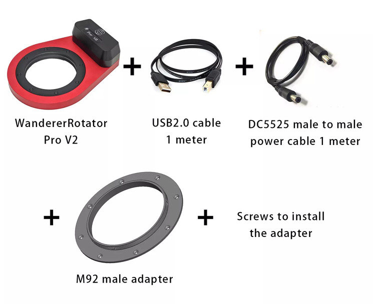 O controlo remoto de um telescópio requer a máxima automatização das tarefas, uma vez que o utilizador não tem frequentemente acesso físico ao instrumento e aos seus acessórios para efetuar ajustes ou alterar as definições. O WandererRotator v2 resolve dois problemas: o enquadramento fotográfico e a desrotação de campo. Trata-se de um dispositivo motorizado, controlado à distância, utilizado para rodar a câmara ou o sensor CMOS para a posição desejada.