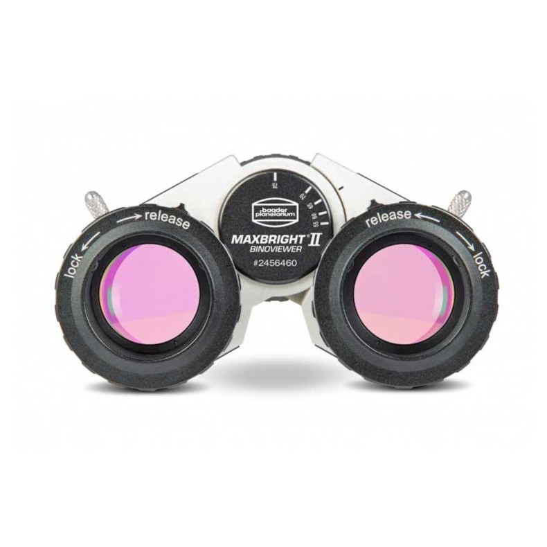Cabeça binocular de Baader Planetarium MaxBright® II Binoviewer. Esta cabeça substitui o clássico MaxBright I e fecha a lacuna entre as cabeças binoculares de nível de entrada mais barato e o Mark V Giant Bino da Baader. É oferecida em vários conjuntos com diferentes acessórios, dependendo da aplicação. A saída para o telescópio é uma saída com rosca T2 onde se pode fixar qualquer acessório ao telescópio. Este conjunto vem com: