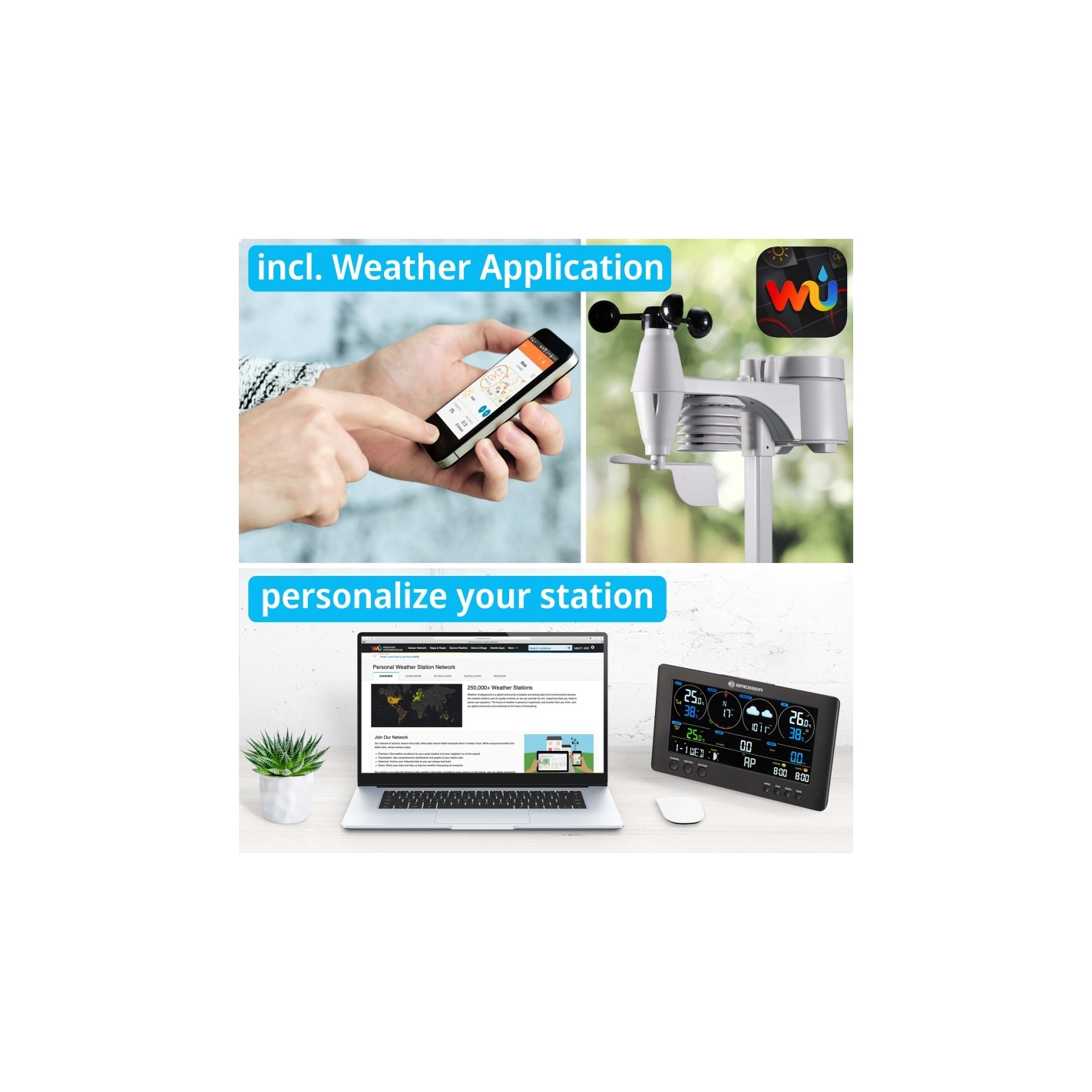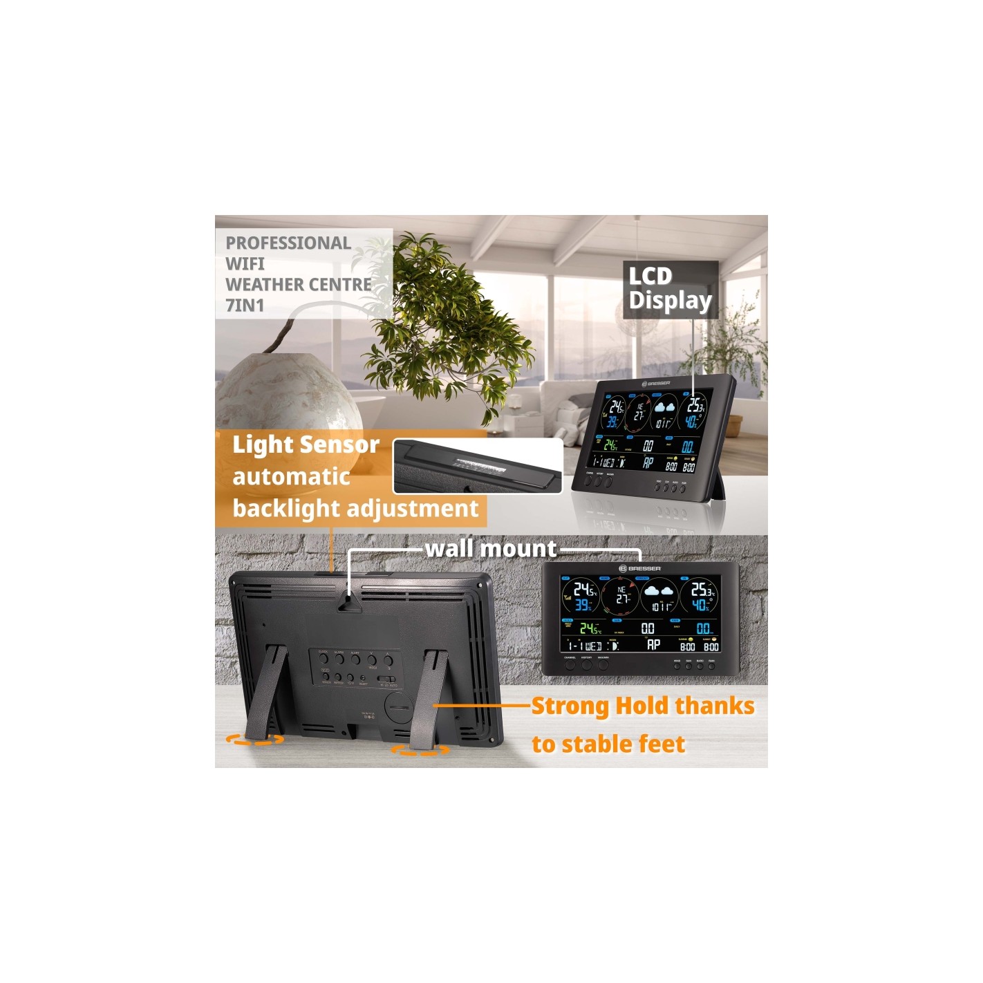 Informações sobre o produto "BRESSER WIFI ClearView Weather Centre with 7-in-1 Sensor"