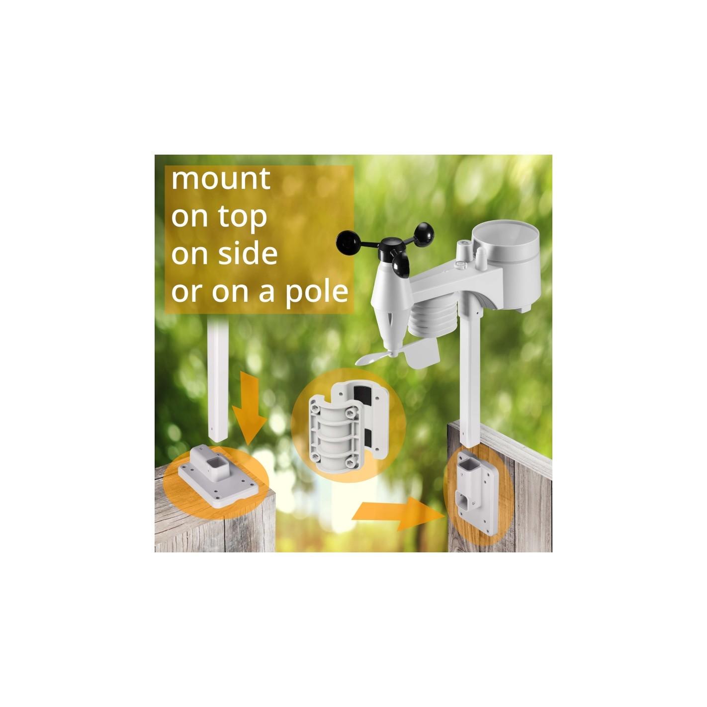 - Suporta um sensor sem fios 7 em 1 com um alcance de transmissão de 150 m (incluído)