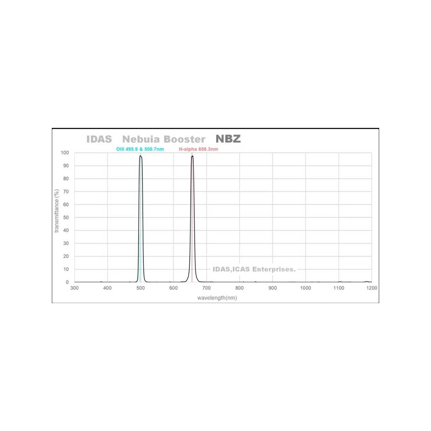 O filtro NBZ deixa passar a linha vermelha H-alfa e as linhas azul-verde [O III] e aumenta o contraste. Obtém-se imagens de banda estreita com apenas uma série de exposições. A largura de banda é de aproximadamente 12 nm.