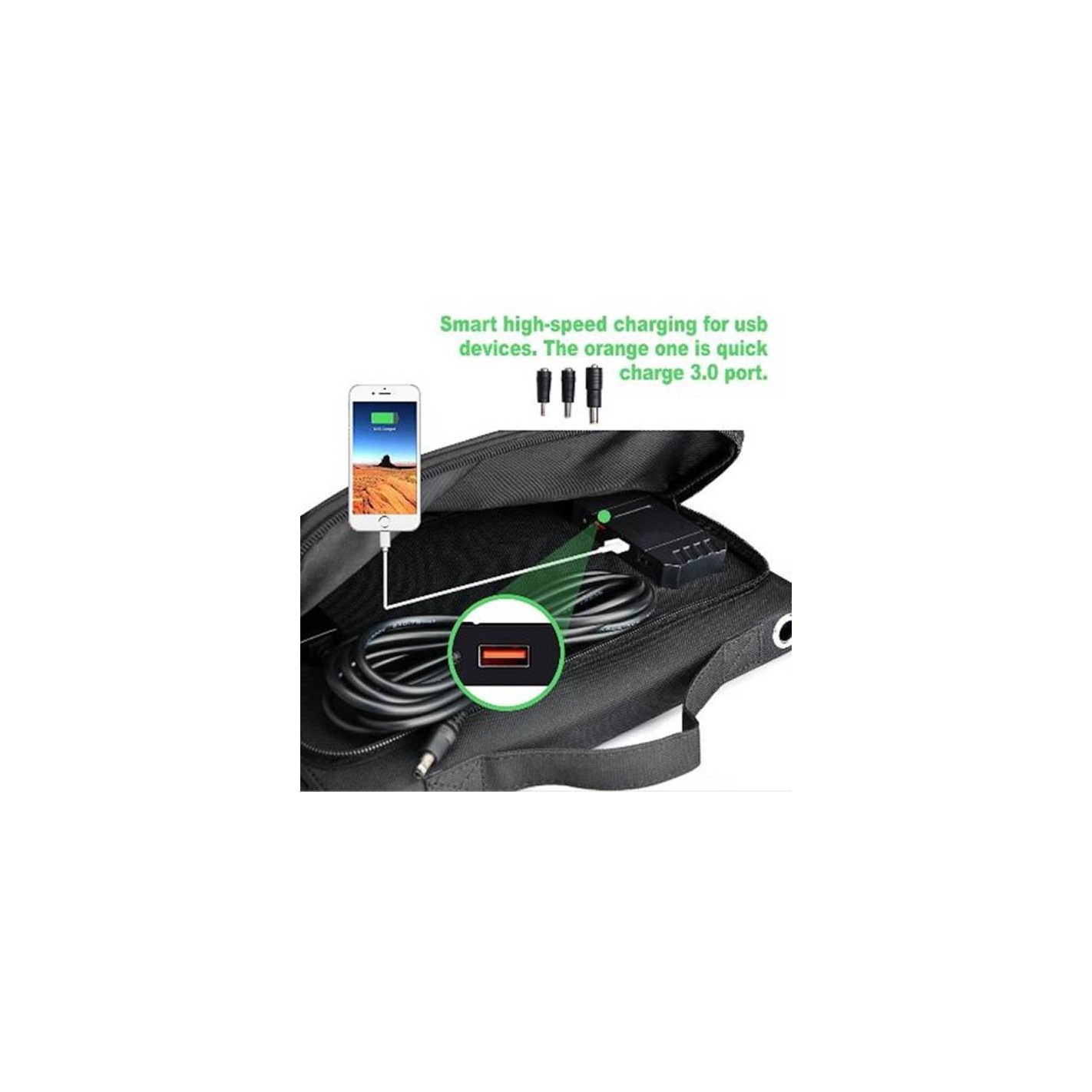 Graças ao design moderno e plano, pode facilmente dobrar os segmentos individuais do painel solar num pequeno saco e guardá-lo na sua bagagem, poupando espaço. Sempre pronto para a próxima utilização espontânea.