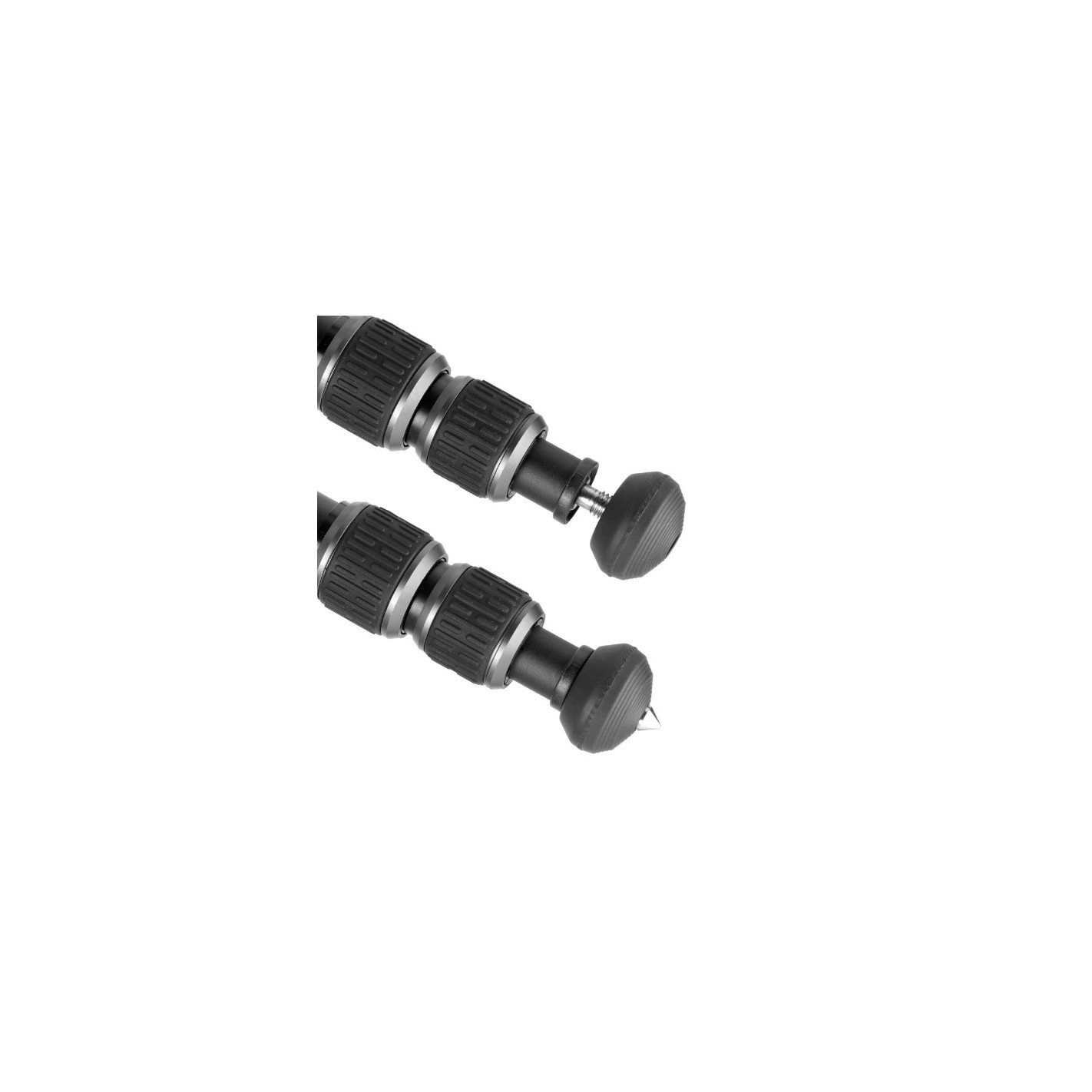 A série Veo 5 possui pés e ponteiras de borracha retrácteis, o que significa que, com algumas voltas, podemos mudar de um tipo para o outro de acordo com as necessidades do terreno.