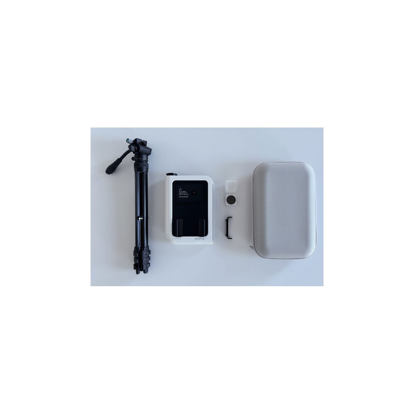 O "Ultimate Kit" da Hestia é composto pelo telescópio Hestia Smart, um tripé, um filtro solar, um localizador solar, um boné solar e um saco de transporte.