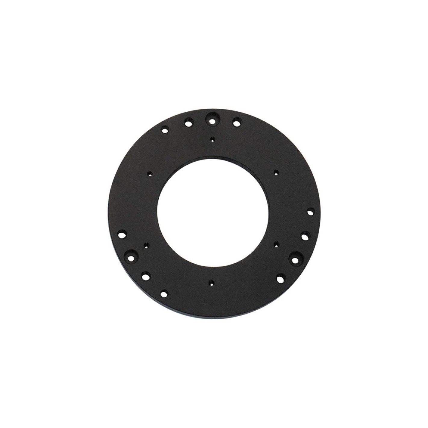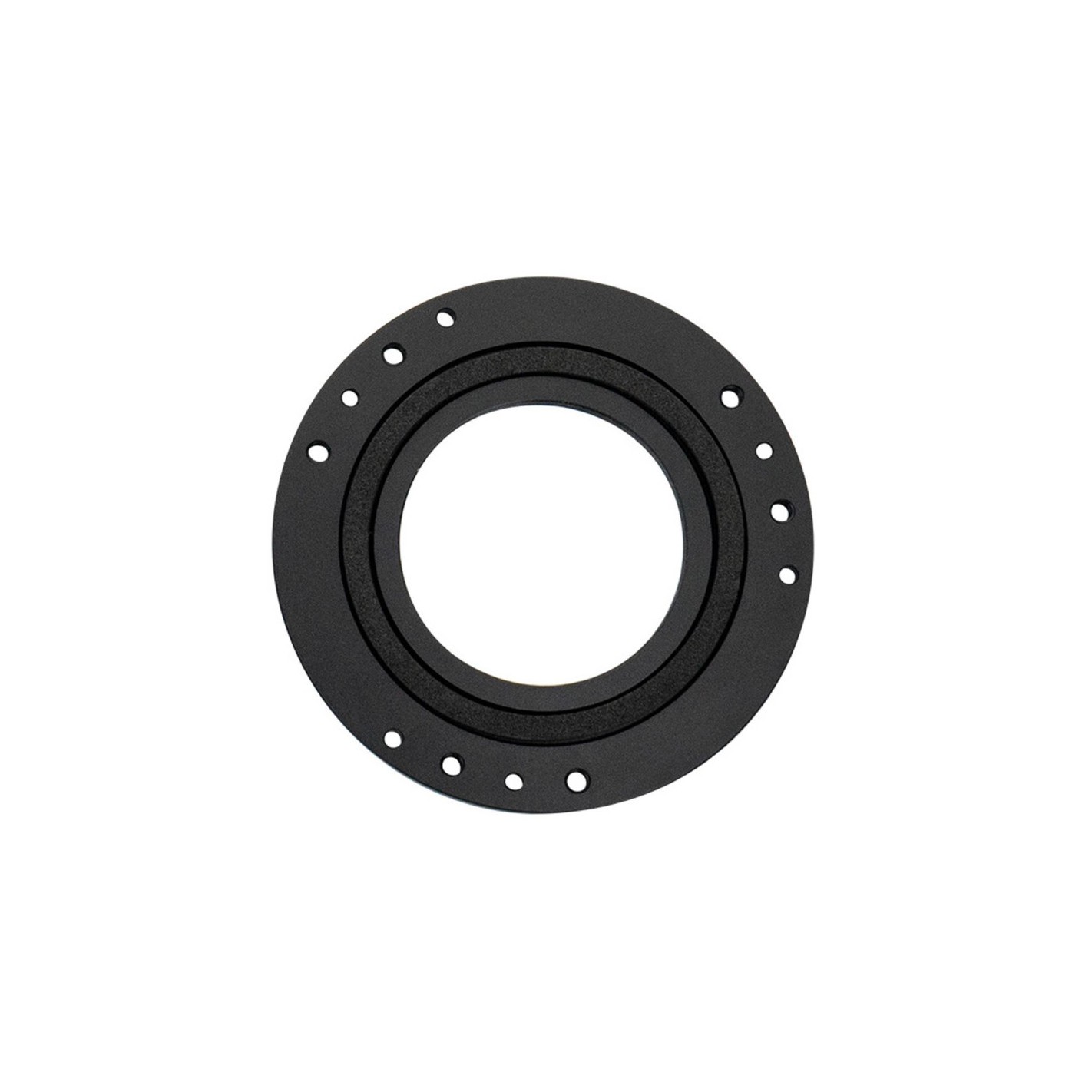 Para este efeito, a ZWO oferece para as suas câmaras um anel de correção de inclinação de 5 mm de espessura com roscas M48 (entrada/saída). É fixado na parte frontal das câmaras ZWO ASI2600/6200/2400 ou no divisor OAG M68. Três parafusos a 120° permitem, com a ajuda de uma chave Allen, o ajuste da inclinação, enquanto três parafusos asseguram a fixação.