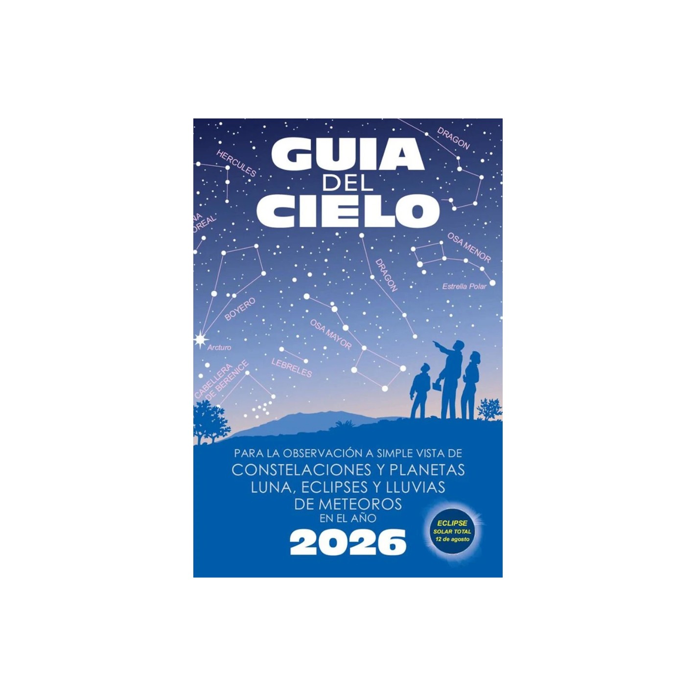 O Sky Guide 2026 é o livro obrigatório para todos os entusiastas da astronomia. Inclui efemérides astronómicas detalhadas, mapas mensais do céu, dicas de observação e os eventos astronómicos mais importantes do ano 2026. Uma referência essencial para apreciar o céu a olho nu, com binóculos ou telescópio. E com informações para o Eclipse Solar Total em Espanha em 2026.