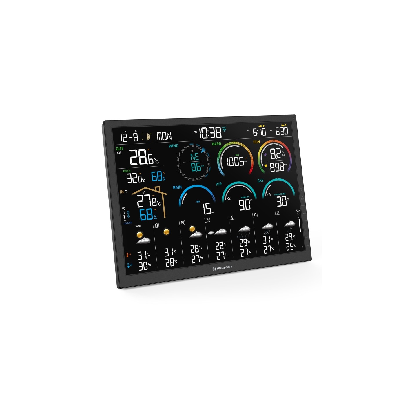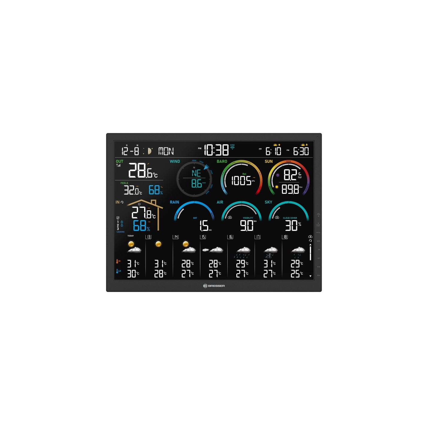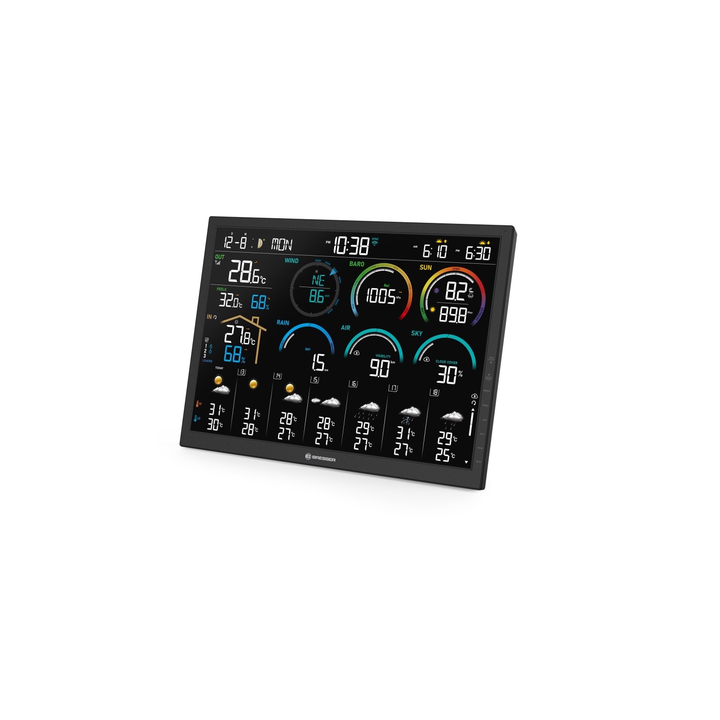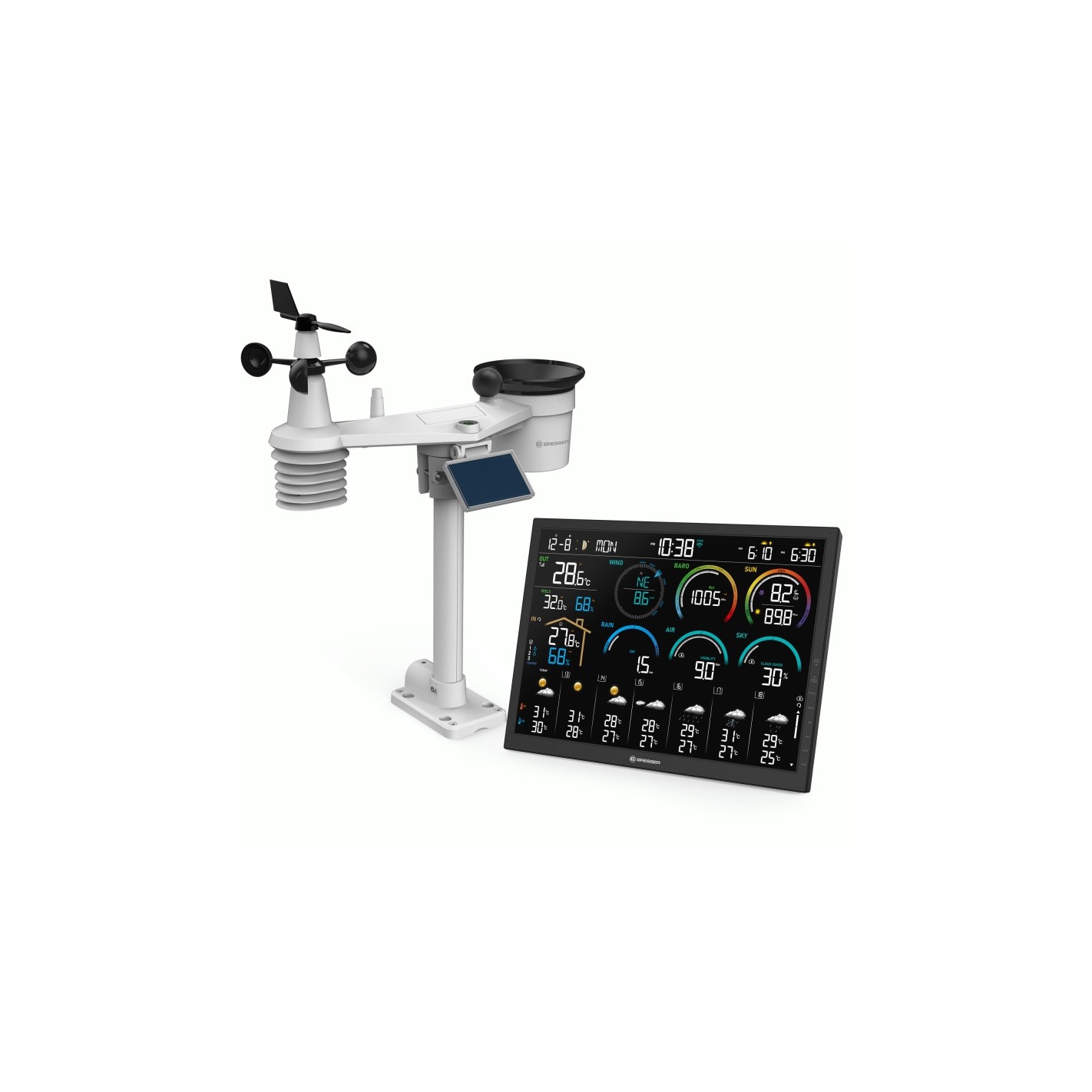 Estação meteorológica Wi-Fi BRESSER 4CAST de 18,5" com sensor exterior 8 em 1 - Controlo total do tempo em sua casa, jardim ou observatório