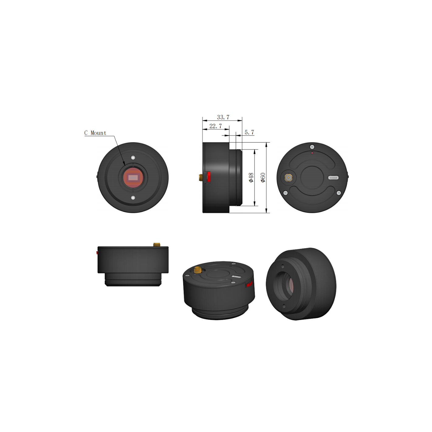 - Tamanho do sensor: 1/2,8" (5,57 × 3,13 mm), optimizado para microscopia, com um bom equilíbrio entre campo de visão e nitidez