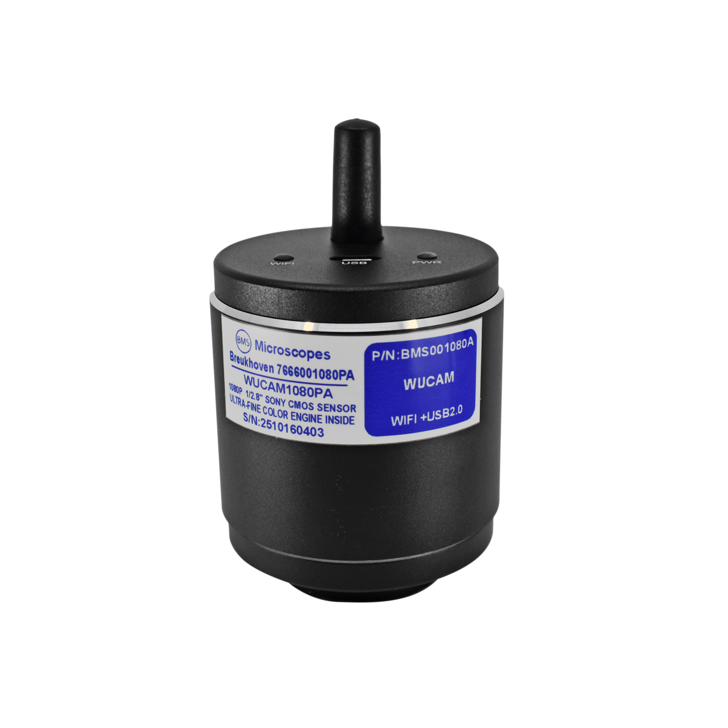 A câmara digital Wi-Fi de 2 MP transforma qualquer microscópio BMS numa solução de imagem sem fios. A câmara transmite imagens de alta resolução diretamente para dispositivos com Wi-Fi, como computadores, tablets e smartphones com iOS, Android, Linux e Windows. Equipada com o software BMS_pix3, a câmara permite a captura, medição e anotação de imagens para fins de ensino e investigação. A robusta caixa de zinco-alumínio e o conetor de montagem em C garantem um desempenho fiável e uma integração perfeita com microscópios BMS. As opções de conetividade dupla via USB 2.0 Type-C e Wi-Fi oferecem uma utilização flexível em vários dispositivos.
