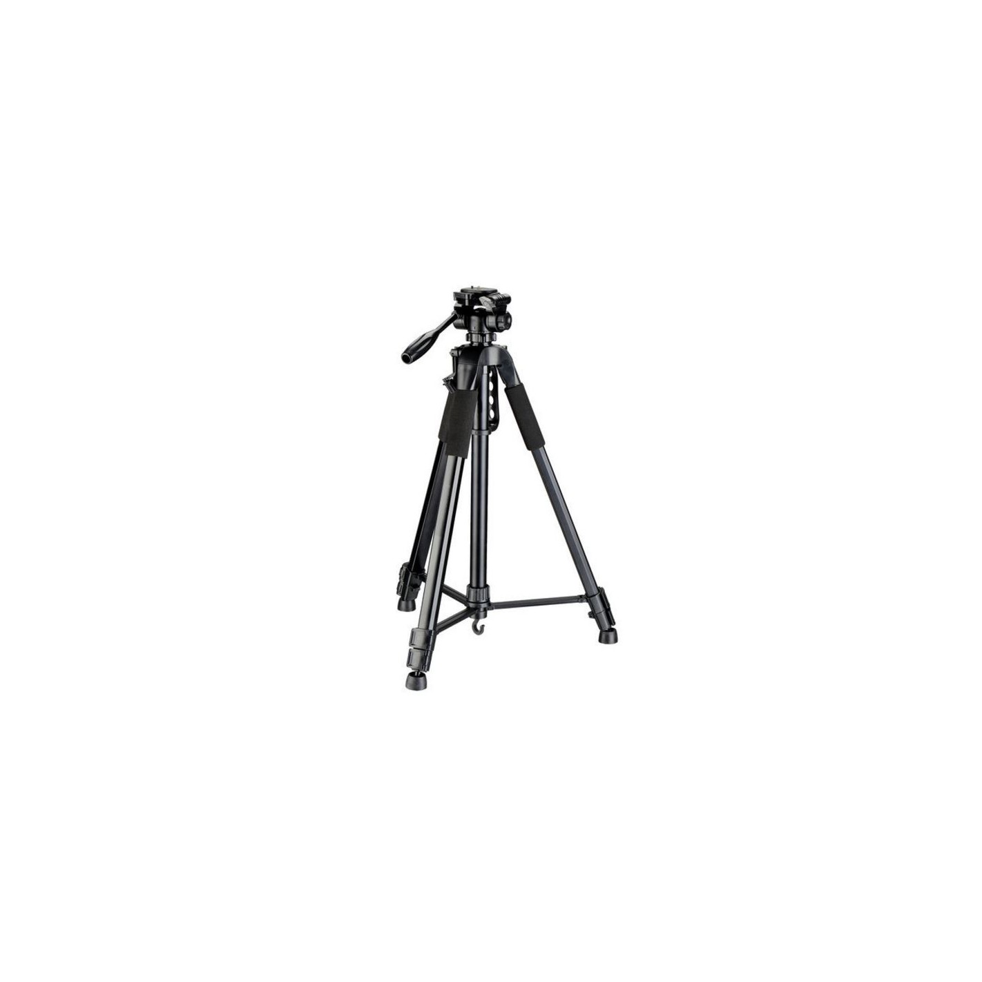 A cabeça panorâmica de 3 vias facilita a orientação precisa da sua câmara ou mira, perfeita para fotografias panorâmicas, gravação de vídeo ou observação da natureza. O nível de bolha de ar incorporado ajuda-o a posicionar o tripé de forma nivelada, mesmo em terrenos irregulares.