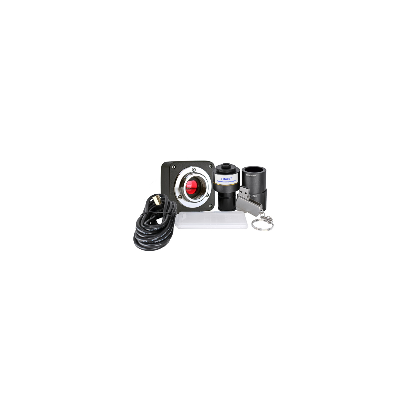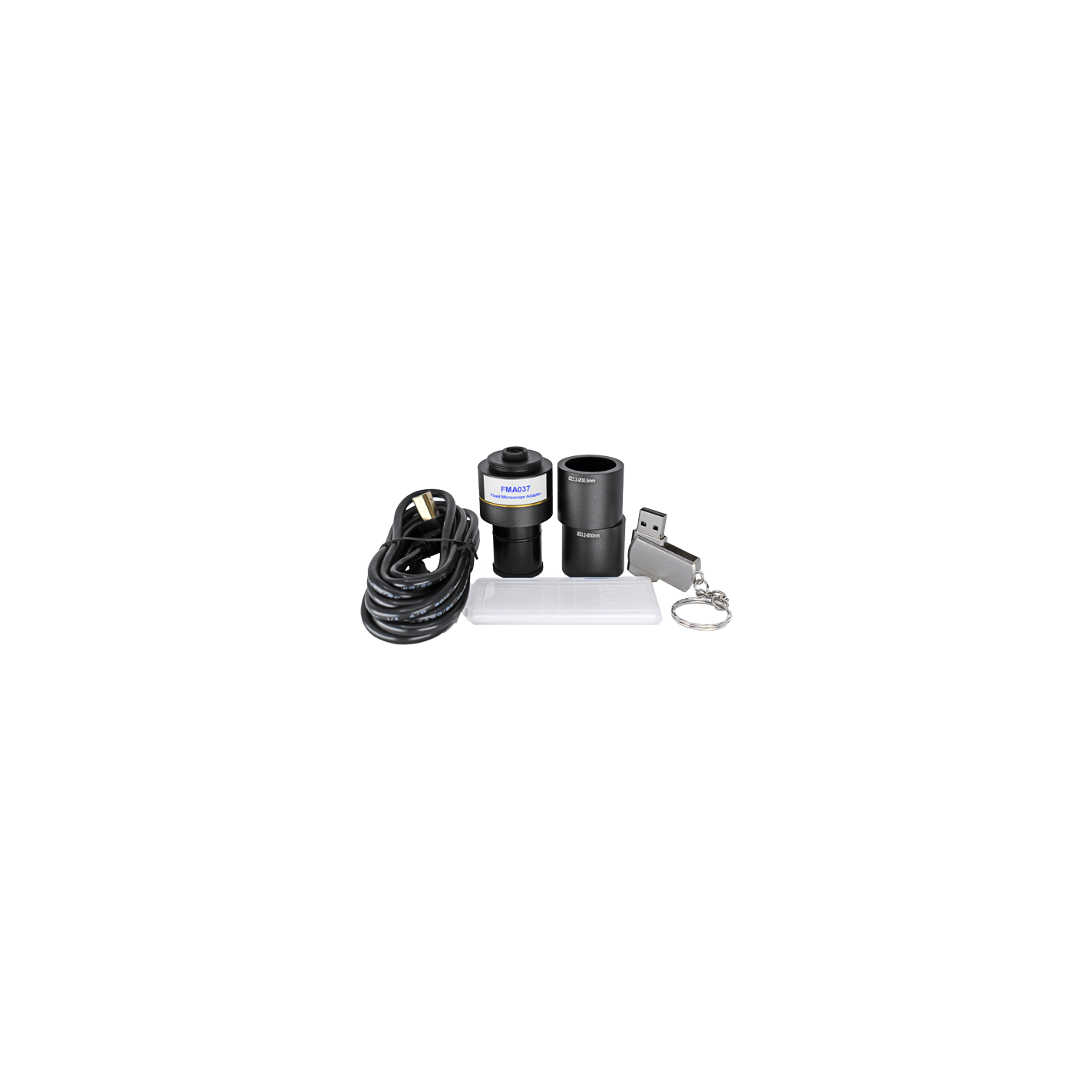 Esta câmara de microscopia digital Wi-Fi de 720p de conceção exclusiva é fornecida com uma objetiva de zoom, um cabo USB e dois adaptadores. A câmara digital capta imagens fixas de microscopia, transmite vídeo em direto para os seus computadores e é compatível com Windows, Mac OS X e Linux. O software Windows, de fácil utilização, oferece funções avançadas como Stitching, EDF (Extended Depth of Focus), gravação de vídeo e funções de medição. A captura de vídeo em direto e de imagens fixas pode ser definida simultaneamente em diferentes resoluções. A objetiva de redução de 0,5X oferece um maior campo de visão. As imagens podem ser editadas e processadas de forma semelhante ao PhotoShop.