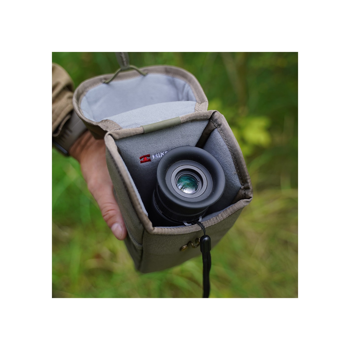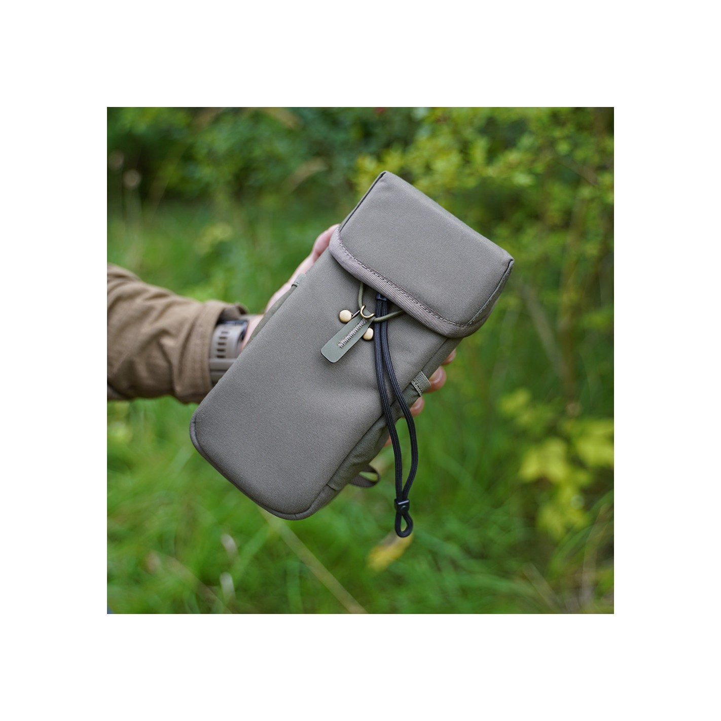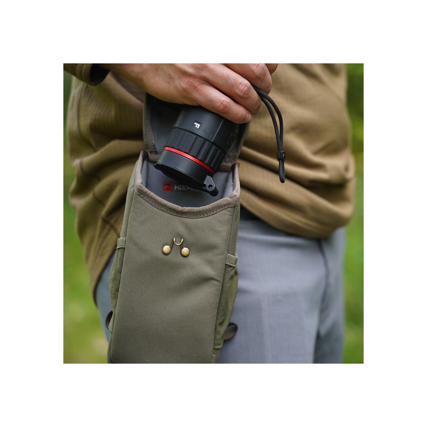 Fabricado em tecido macio e silencioso. Inclui sistema MOLLE e é fácil de fixar à mochila ou ao arnês.