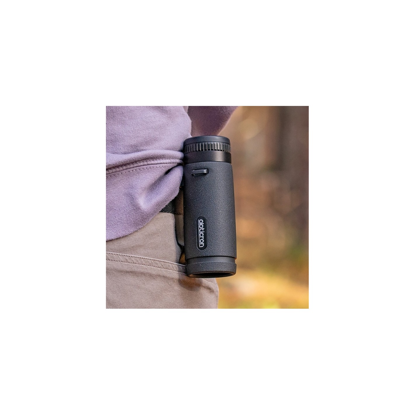Os monóculos Trailfinder HD são fornecidos num estojo macio com correia para o pescoço e cobertura da lente objetiva de borracha integrada