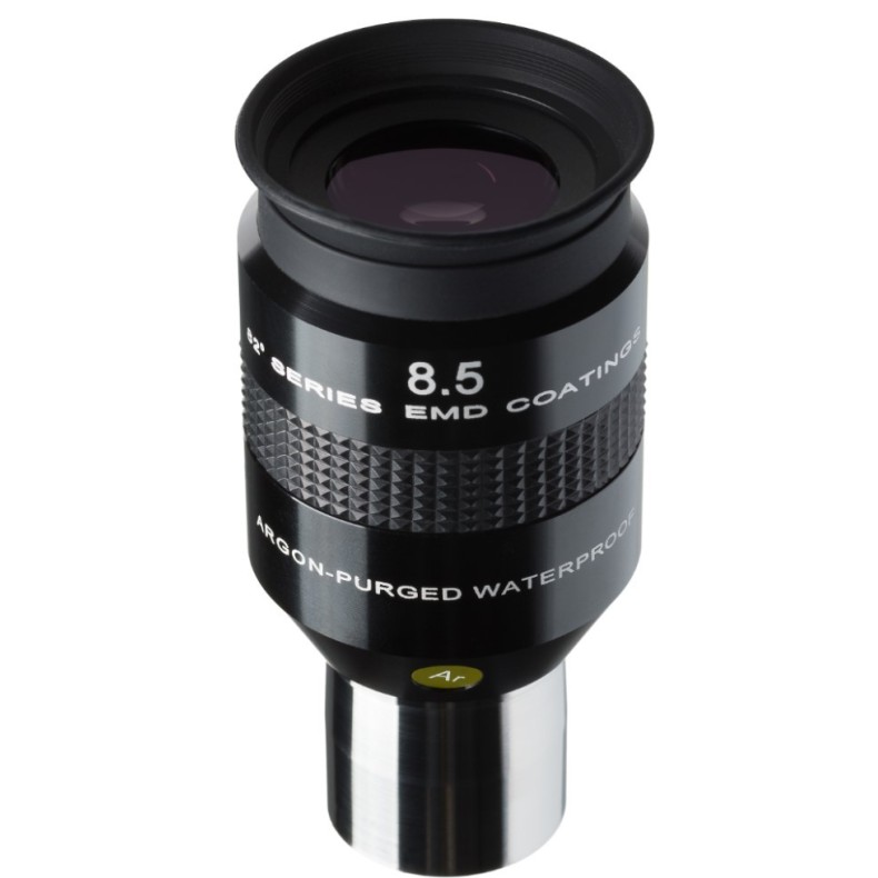 Estas são excelentes oculares de campo plano com vários elementos que irão mudar a sua experiência de observação astronómica. O revestimento EMD patenteado proporciona um elevado contraste e evita reflexos incómodos. Outra grande vantagem destas oculares é a sua excelente nitidez, que é particularmente notória quando se observam os planetas e a Lua. As oculares de alto desempenho com distâncias focais curtas (ampliações elevadas) de 3 mm a 10 mm não são apenas utilizadas para observações da Lua, planetas e estrelas binárias, mas também podem ser utilizadas para objectos compactos e brilhantes do Deep Sky. Não só o tamanho de umanebulosa planetária ou de umaglomerado globular é impressionante quando estes preenchem todo o campo de visão de uma ocular, como também o céu de fundo será muito escuro, uma vez que o contraste efectivo aumenta consideravelmente com o aumento da ampliação. No entanto, para obter uma imagem nítida com uma ampliação elevada, são necessárias condições atmosféricas boas a excelentes. A ocular de 8,5 mm da série LER de 82° é uma escolha popular para muitos telescópios, permitindo que a maior ampliação possível seja alcançada directamente sem um teleconversor adicional ou uma lente Barlow .