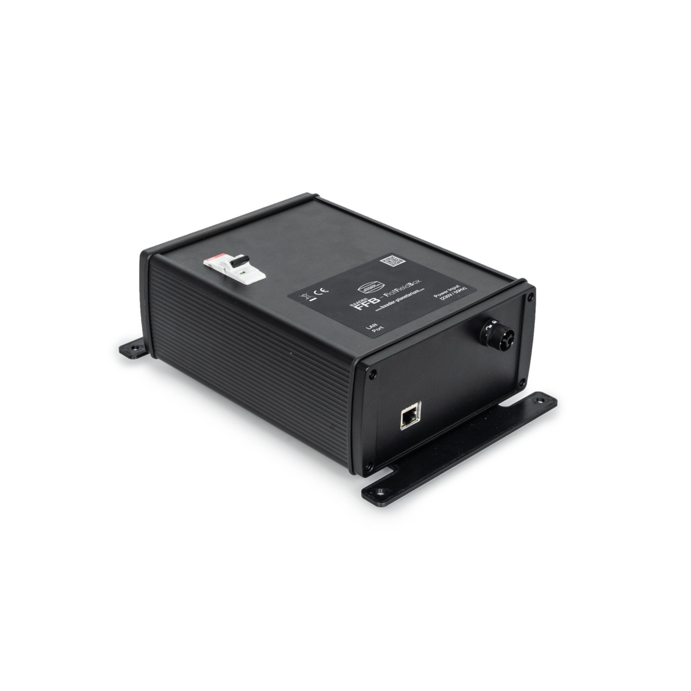 A unidade de controlo (FlatPowerBox) é montada na parte lateral do FlatFieldBox. A placa de regulação de alta qualidade controla a luminosidade dos canais de cor individuais. Através da interface web integrada, pode operar e configurar todas as funções da FFB, e gravar os seus apartamentos de forma rápida e eficiente com até oito predefinições. A fonte de alimentação LED fornece 12V e a linha de entrada está protegida por um disjuntor automático em caso de avaria.