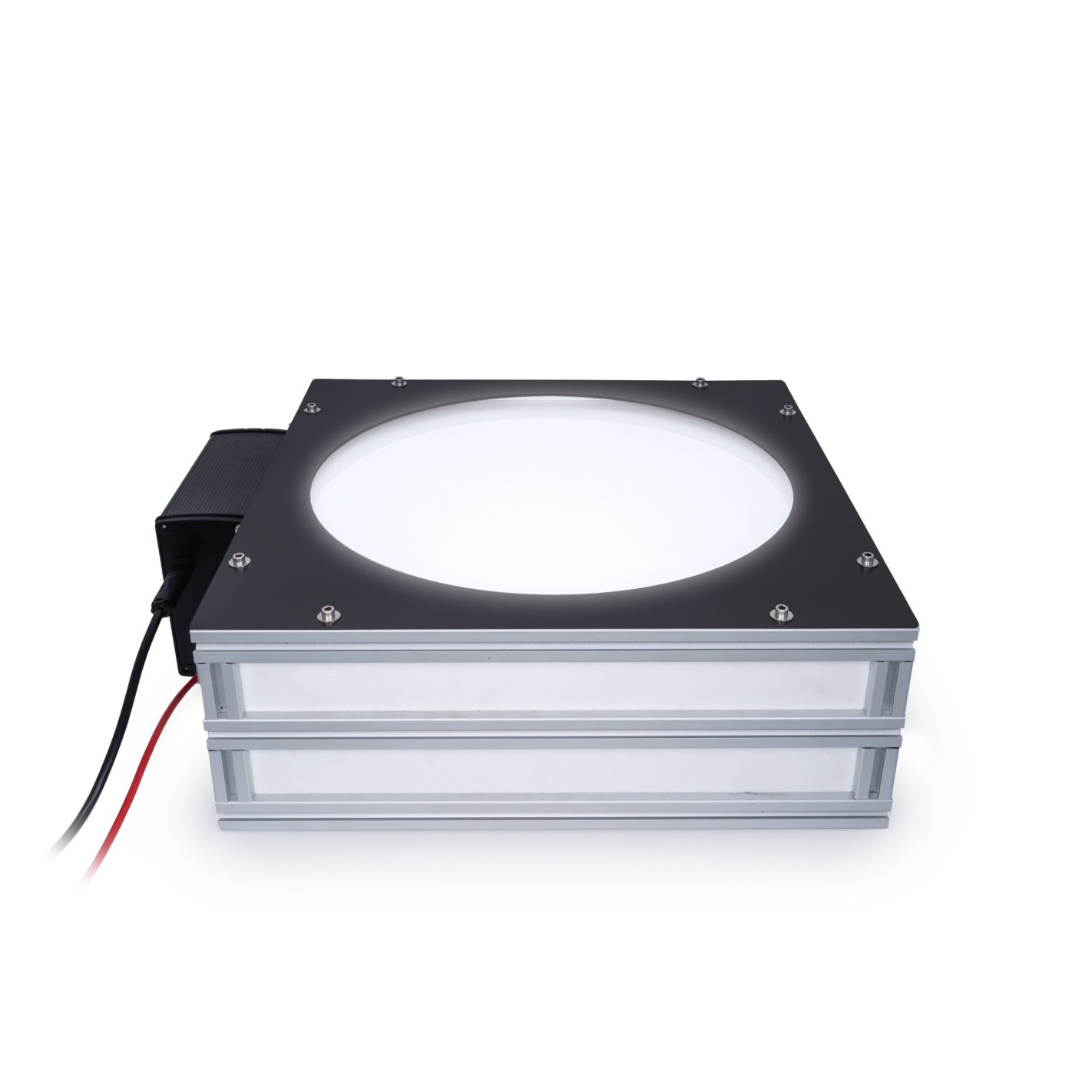 A unidade de controlo (FlatPowerBox) é montada na parte lateral do FlatFieldBox. A placa de regulação de alta qualidade controla a luminosidade dos canais de cor individuais. Através da interface web integrada, pode operar e configurar todas as funções da FFB, e gravar os seus apartamentos de forma rápida e eficiente com até oito predefinições. A fonte de alimentação LED fornece 12V e a linha de entrada está protegida por um disjuntor automático em caso de avaria.