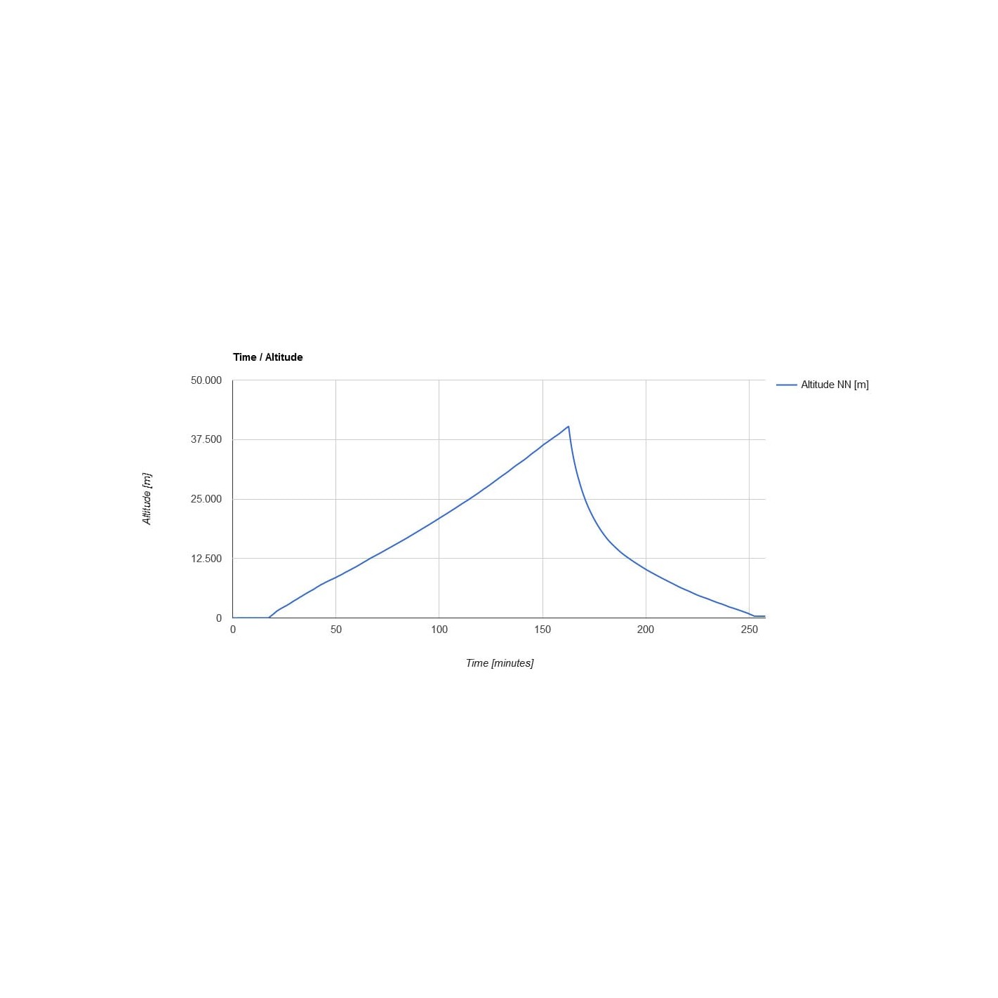 Balão 800 Diâmetro: 1,4 m - 1,6 m Peso: aprox. 800 g Carga útil: até 800 g Velocidade de subida: 5-7 m/s Altura máxima: 30.000 m Quantidade de enchimento com carga útil de 800 g: aprox. 2,2 m³ Método de armazenamento: À temperatura ambiente sem luz solar direta