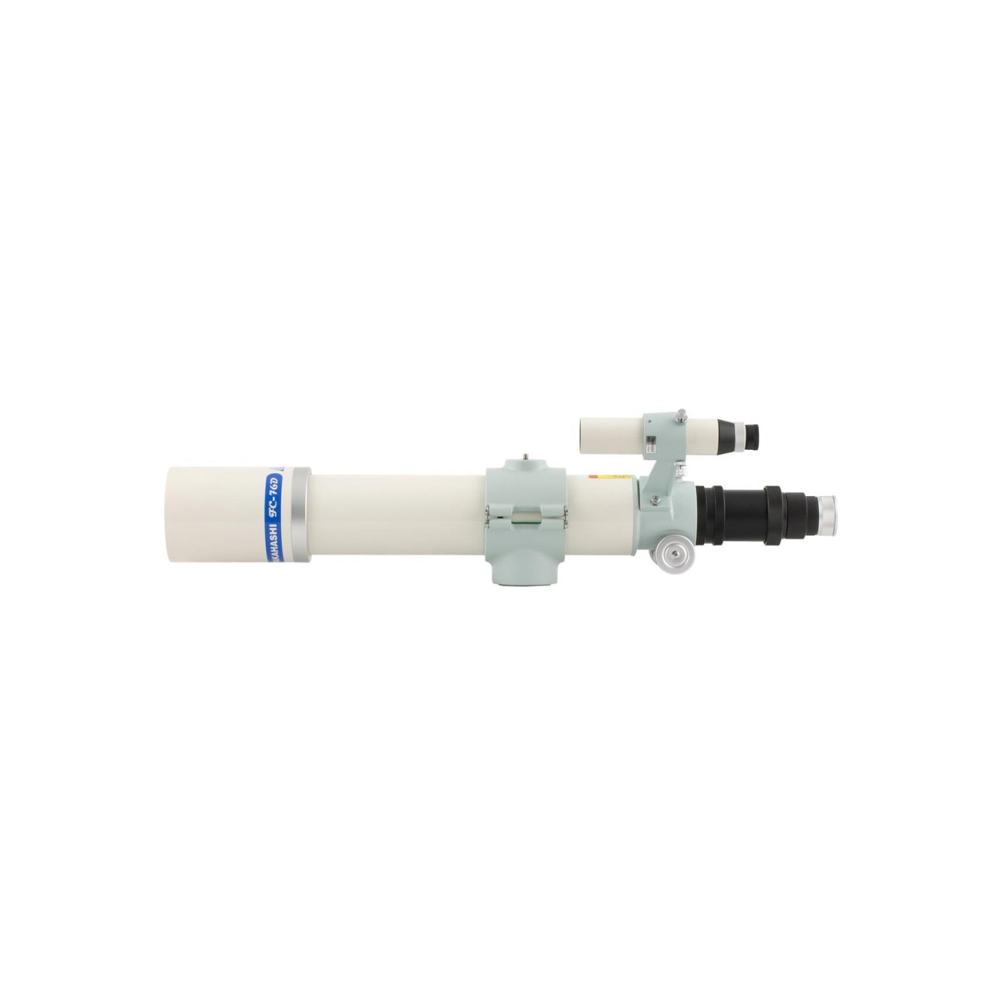 O telescópio apocromático FC-76DCU está equipado com um dupleto de fluorite com F/D 7,5. O seu peso muito reduzido, apenas 1,9 kg só para o tubo, faz dele um instrumento muito fácil de transportar que pode ser utilizado com um simples tripé fotográfico. É fornecido com um desembaciador fixo e uma cremalheira compacta de 31,75 mm herdada do FS-60CB. Um travão bloqueia a focagem e pode ser adicionado um colar rotativo opcional para facilitar o enquadramento fotográfico.