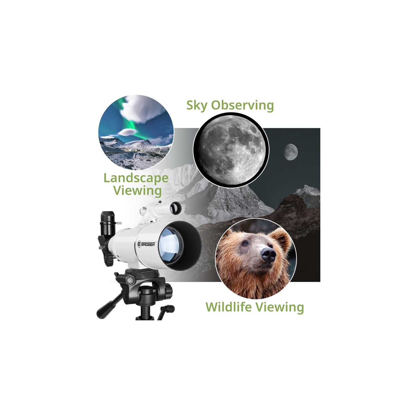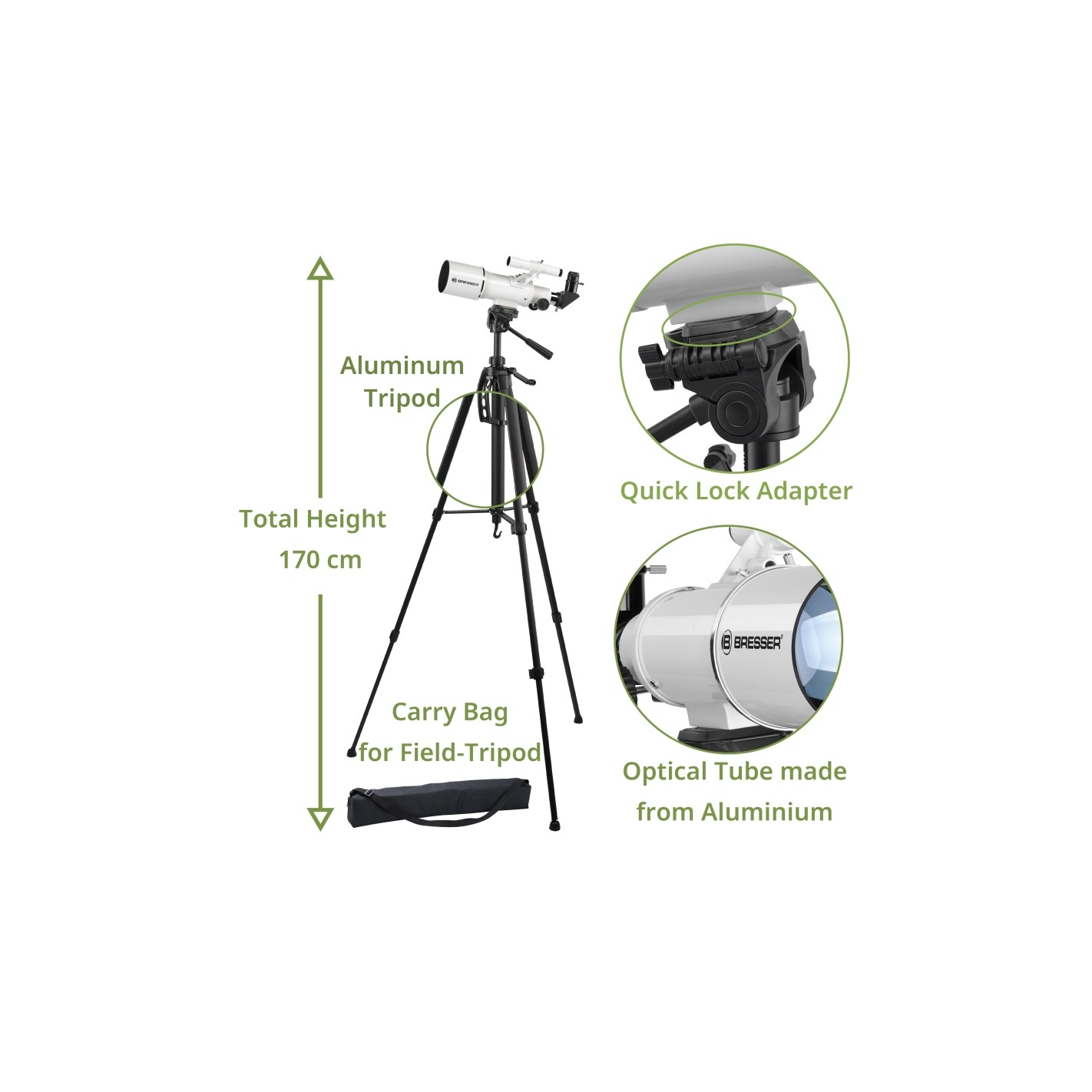 Um telescópio Richfield com uma distância focal curta de 350 mm. Adequado para viajar e observar a natureza e grandes aglomerados de estrelas abertas e a Via Láctea com uma visualização de imagem vertical e correta.
