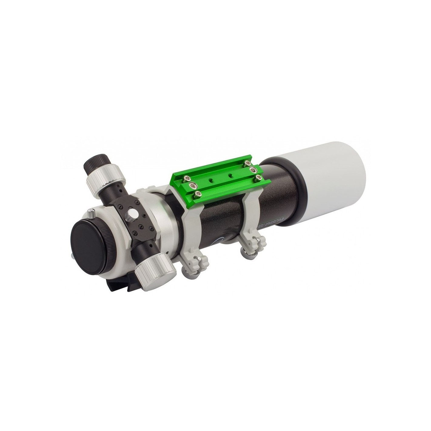 O tubo está equipado com dois anéis que se fixam a um rabo de pomba de 12cm de comprimento, o que permite que o tubo seja fixado a quase todos os tipos de montagem equatorial. E para o transporte mais seguro possível, o telescópio é fornecido com uma caixa de alumínio que o protege eficazmente de choques.