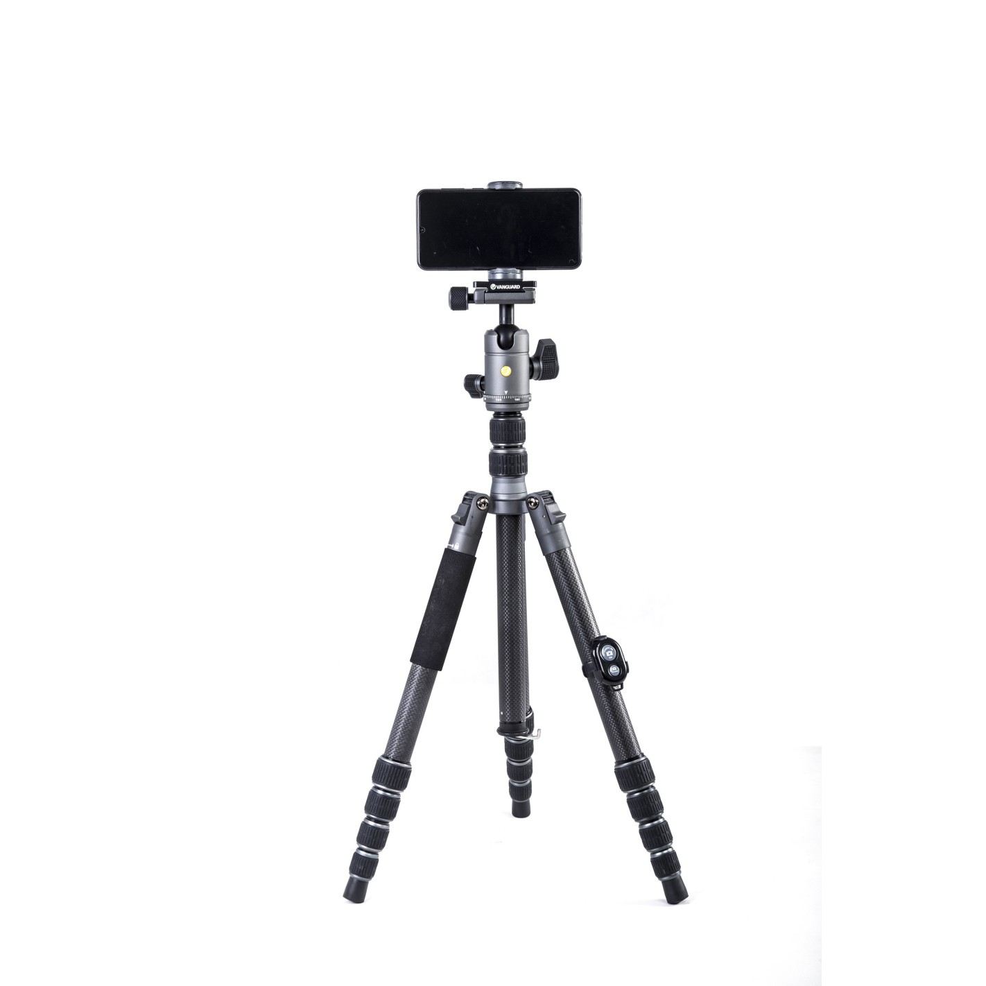 O VEO 3GO 265HCB é um tripé de viagem compacto em fibra de carbono com uma cabeça de bola compatível com Arca Swiss e uma perna de monopod descapotável (que também pode servir como um poste de auto-filtragem / vlogging pole), adaptador para smartphone e disparador remoto Bluetooth que oferece a máxima versatilidade para kits de câmaras sem espelho, kits de câmaras DSLR e até smartphones.