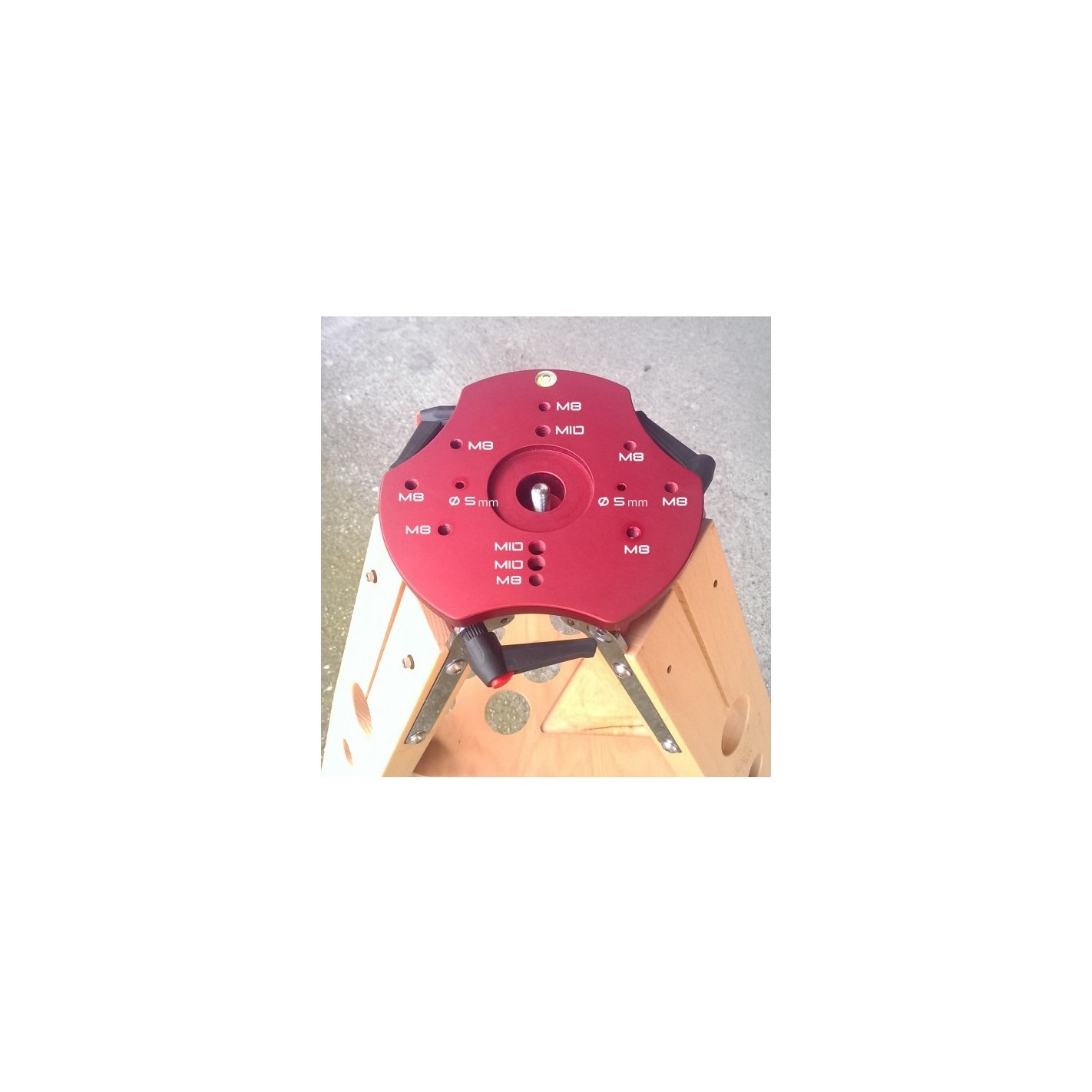 A fixação das pernas ao tabuleiro triangular de acessórios é muito firme, proporcionando um bloqueio perfeito e uma estabilidade extraordinária.