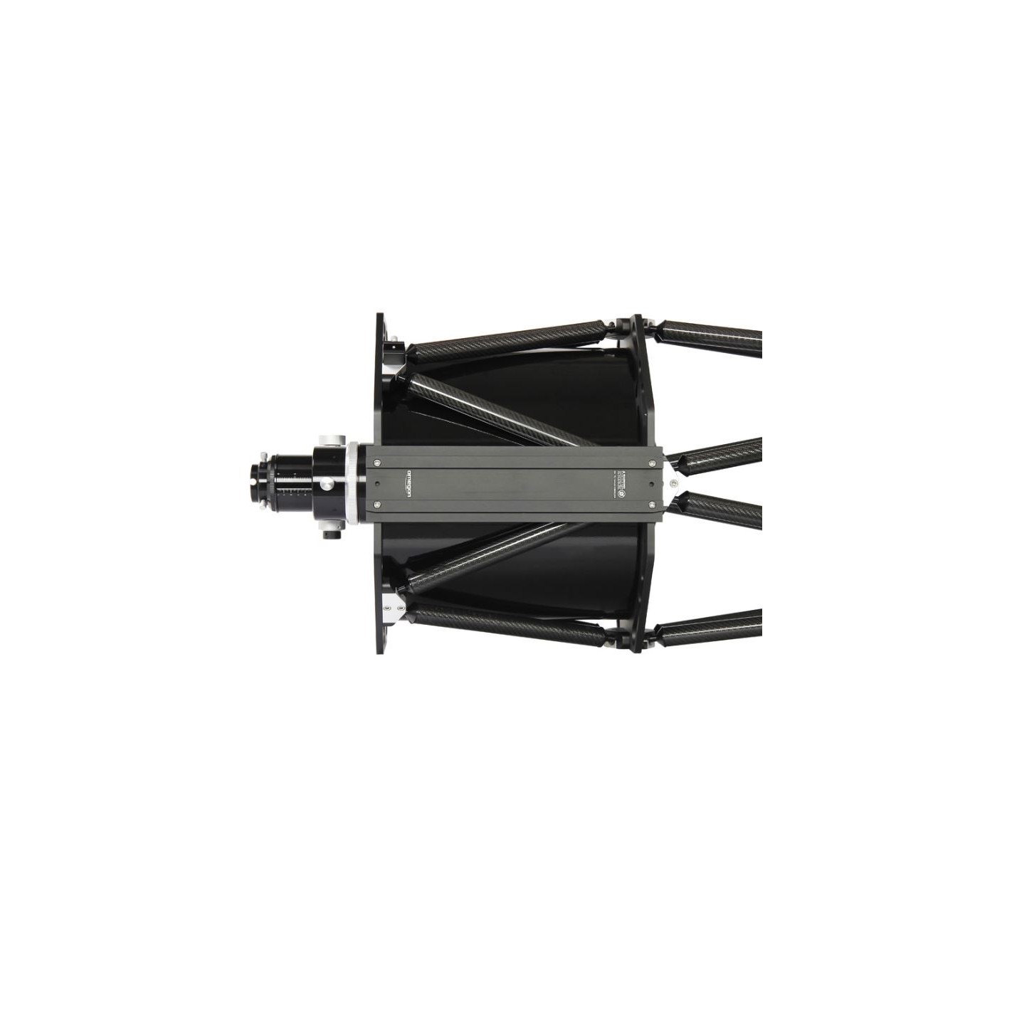 A maior parte dos telescópios profissionais são telescópios de tubo aberto. Pois bem, este telescópio também beneficia das vantagens associadas a esta conceção. As grelhas de carbono são rígidas, leves e muito resistentes às mudanças de temperatura. De facto, esta é outra razão pela qual a sua focagem é tão estável. A renovação do ar é melhor nos tubos abertos e evita a criação de um microclima no interior.